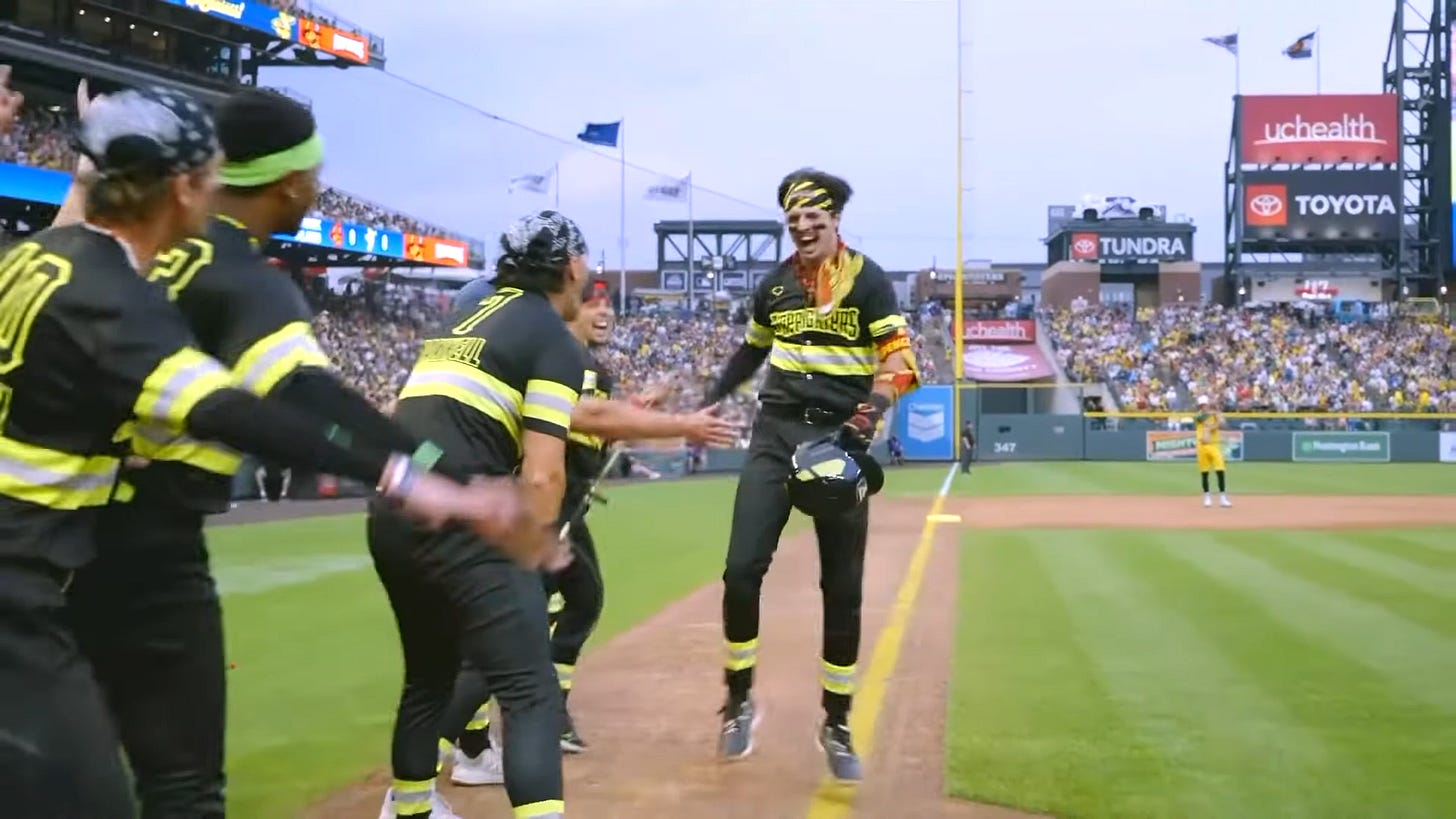 Watching this game, I could see how the thin air does affect the flight of the balls, I noticed a lot of moonshot foul balls, balls too high that the average fan may not be able to get a handle on it, hence why the game was limited to only one fan out. Overall, it was an incredible game to a Banana Ball record crowd for an MLB-specific stadium (50,000). Jesse Cole outdid himself again.
