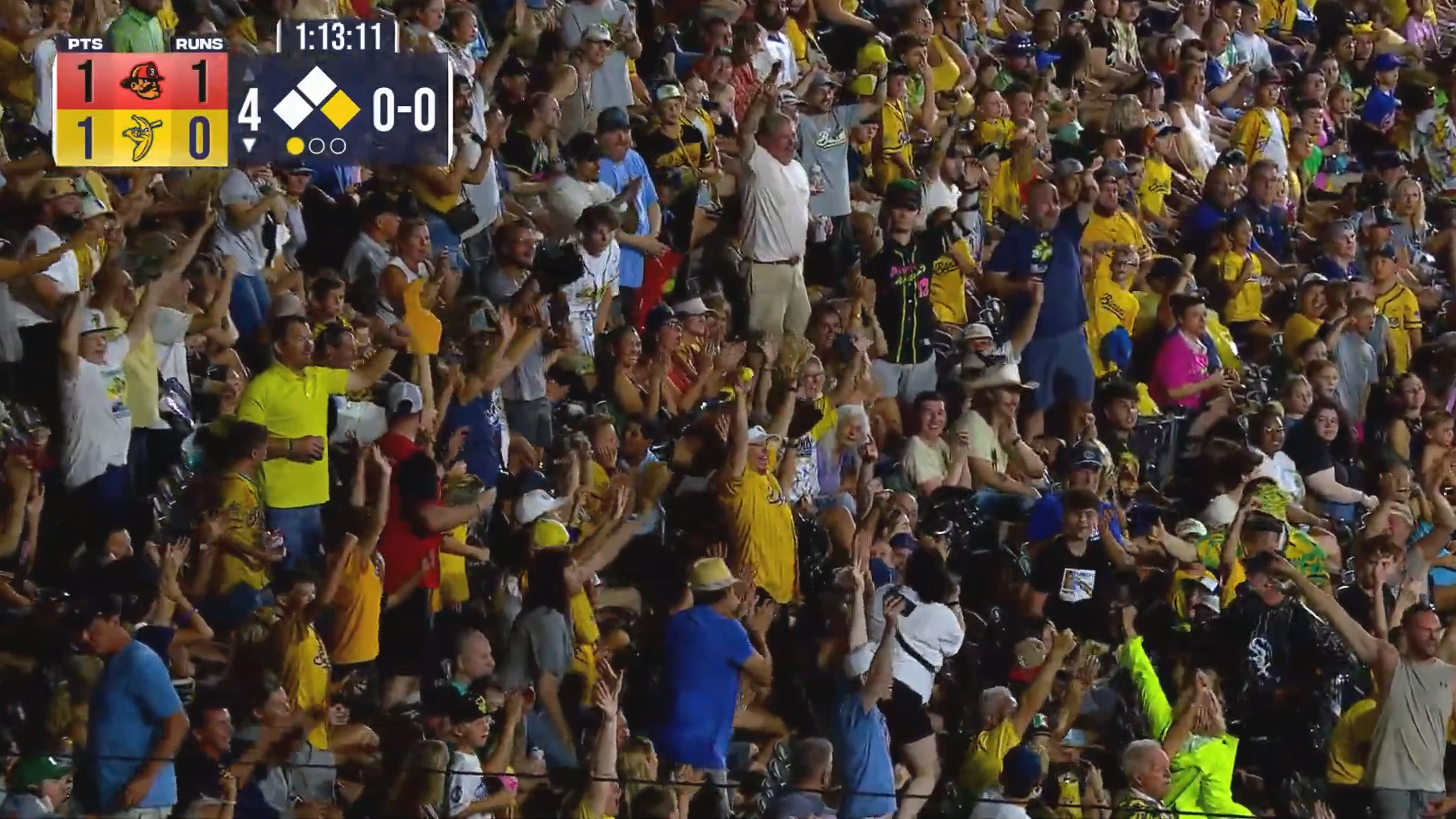 Bananas win: The Firefighters 2(4) ~ Savannah Bananas 3(4).