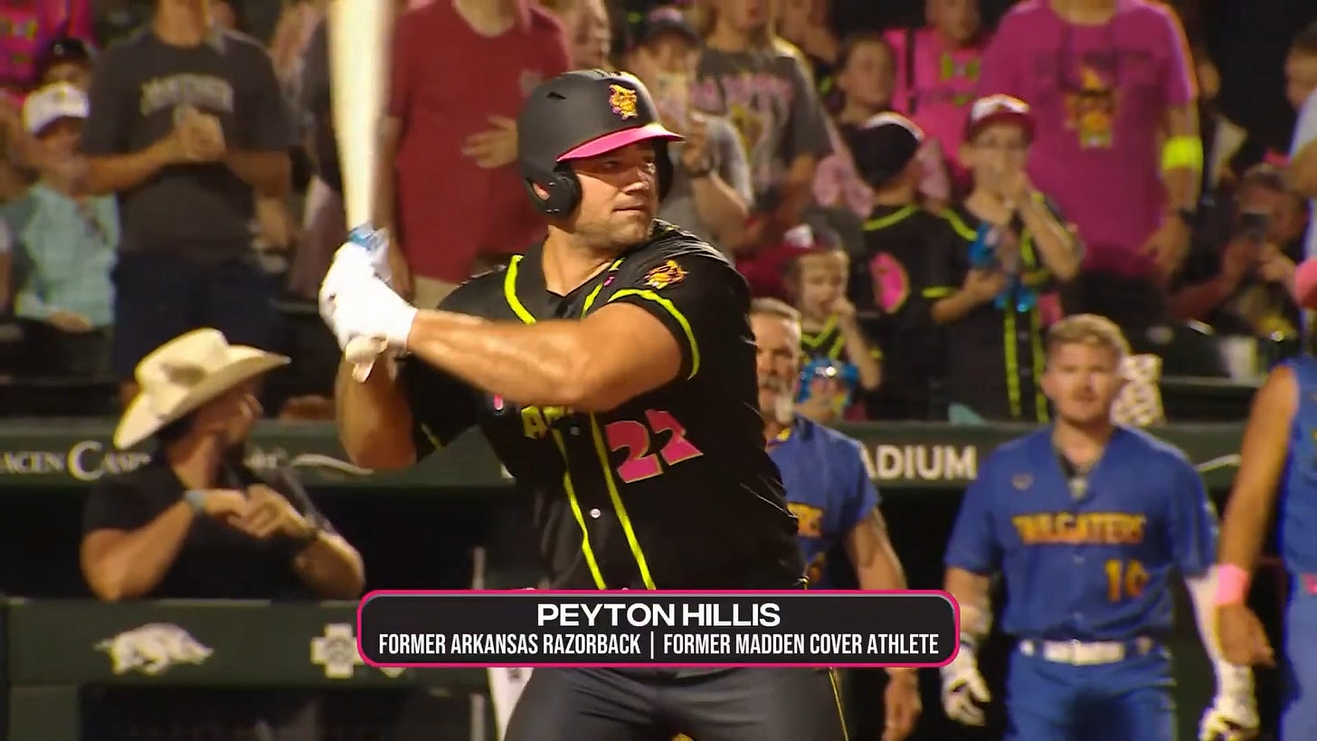 The Party Animals continues their college tour to the University of Arkansas with the first Banana Ball game played in the state. The game itself was a see saw battle. Bottom of the first, Tanner Thomas would hit a two run jack also bringing in Reece Hampton. The first inning would get pushed. The Tailgaters would pick up the third and fifth innings but then the Animals would then claim the sixth, seventh and eighth innings (the latter with 4 runs). Bottom of the fifth, the Animals will call up former Arkansas Razorbacks football player Peyton Hillis. He would ground to Mac Danford, who walked it to first but also picked up a trick play. Both teams pick up a run in the ninth inning and the Party Animals would win 4~3.