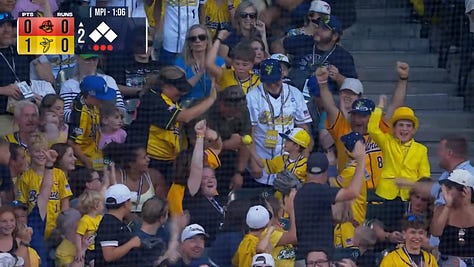 All screenshots: Fans First Entertainment. YT @thepartyanimals.bananaball and YT @thesavannahbananas (fair use).
